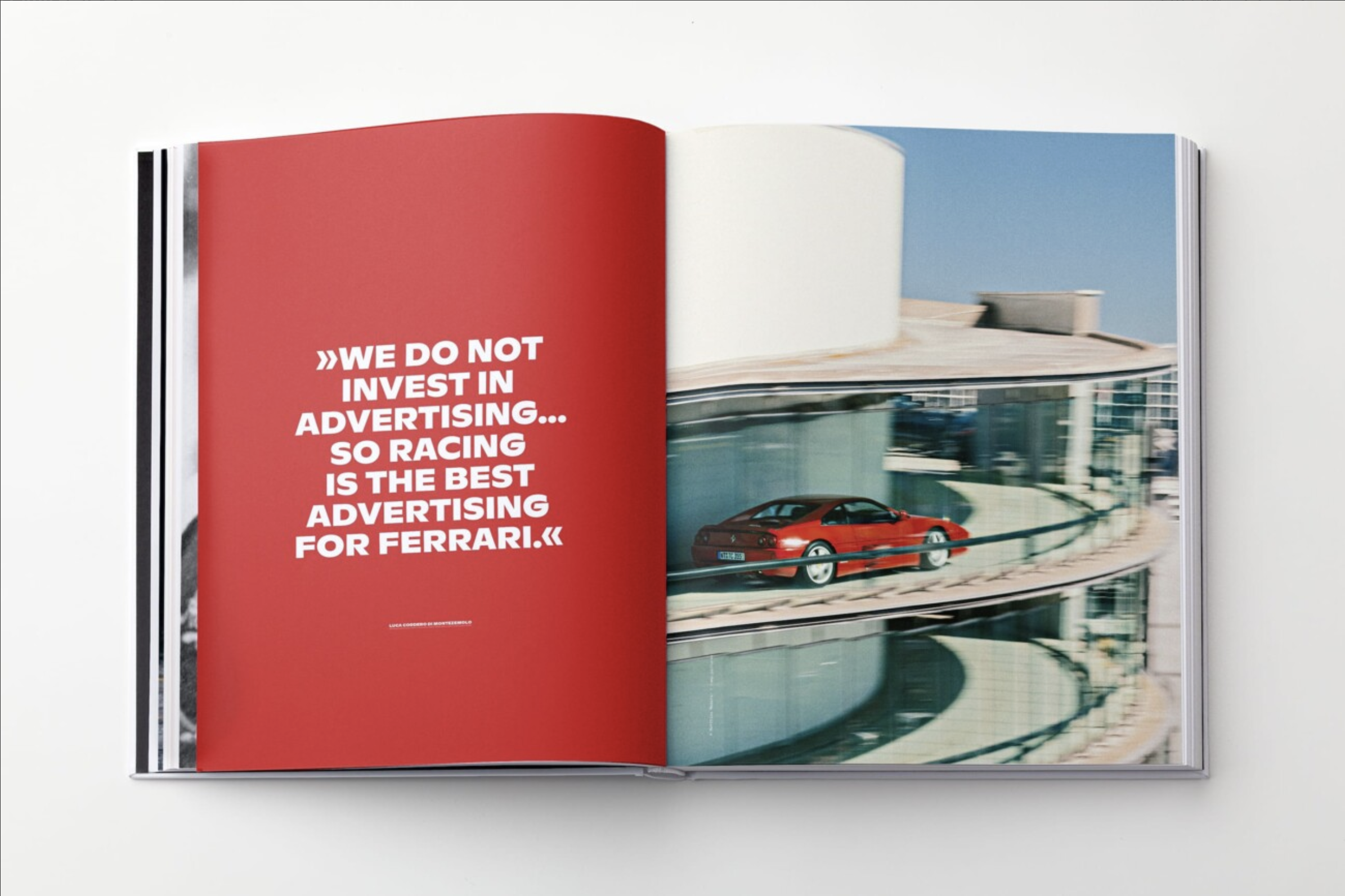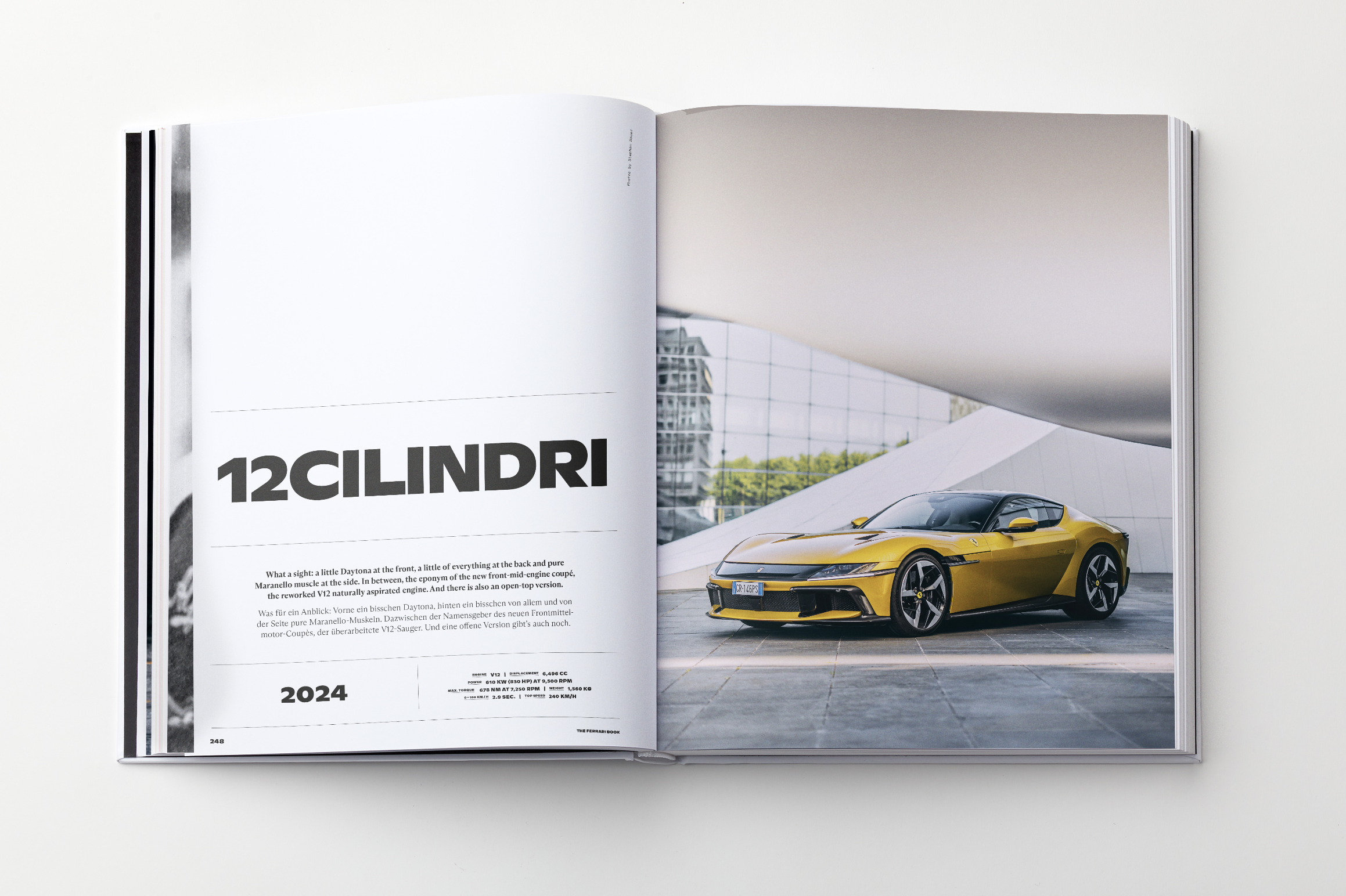 Der opulente Bildband eröffnet auf 304 Seiten einen tiefen Einblick in Geschichte und Lebensgefühl von Ferrari. In acht Kapiteln feiert er Design, Geschwindigkeit und Innovation der Marke und lässt Experten wie Flavio Manzoni und Gianmaria Fulgenzi zu Wort kommen.